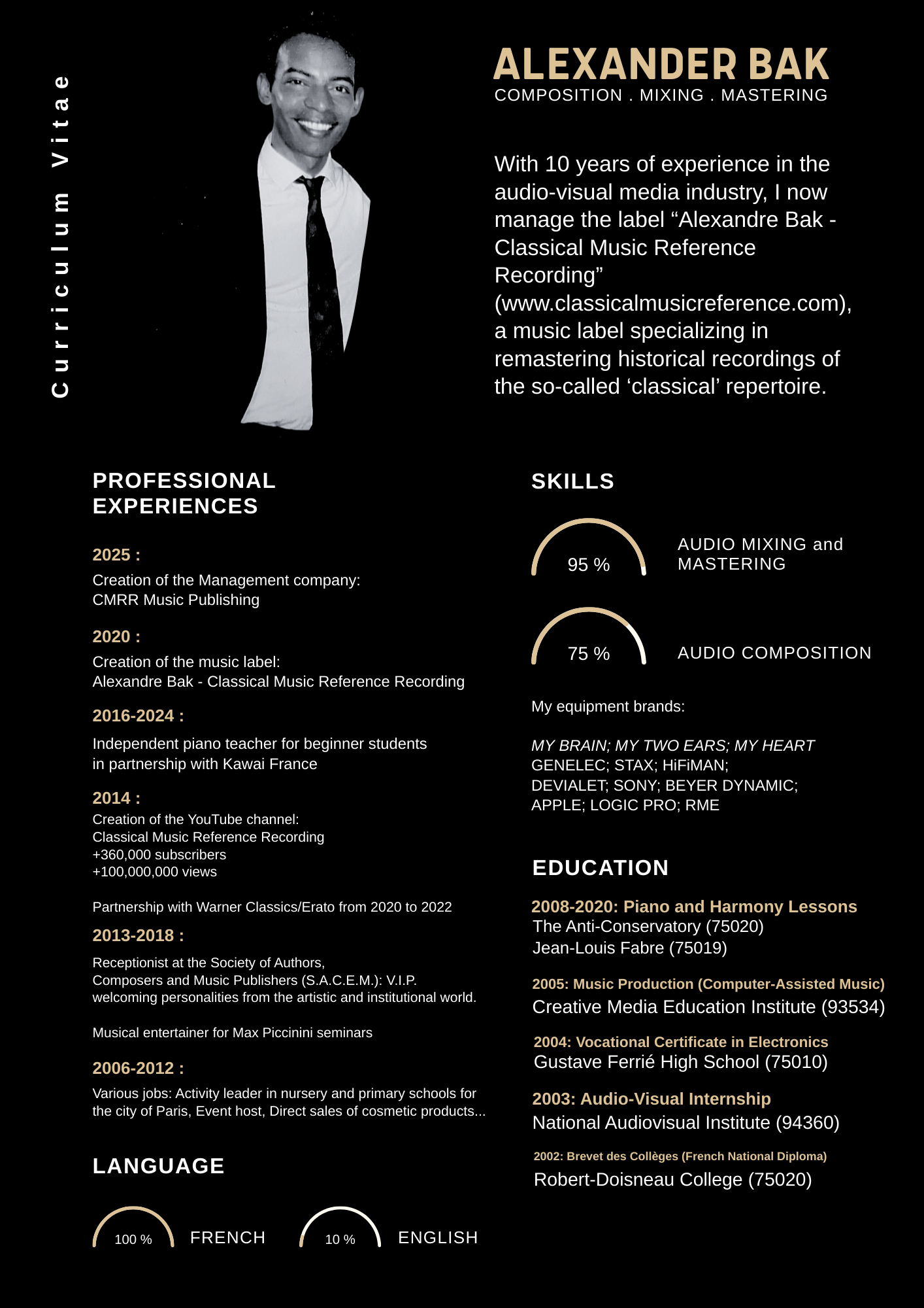 "Alexandre is a classical music enthusiast with a keen ear and a highly developed sensitivity. His expertise in the field of mastering, combined with his ability to uncover remarkable musical gems, allows him to quite literally bring recordings back to life."