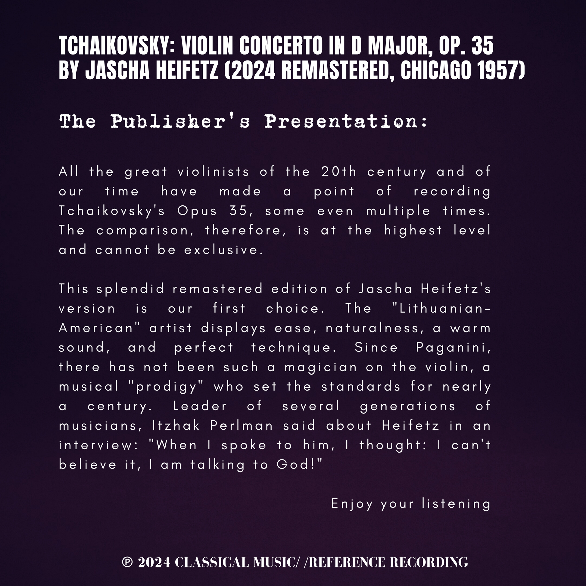 Tchaikovsky: Violin Concerto in D Major, Op. 35 by Jascha Heifetz (2024 Remastered, Chicago 1957)
